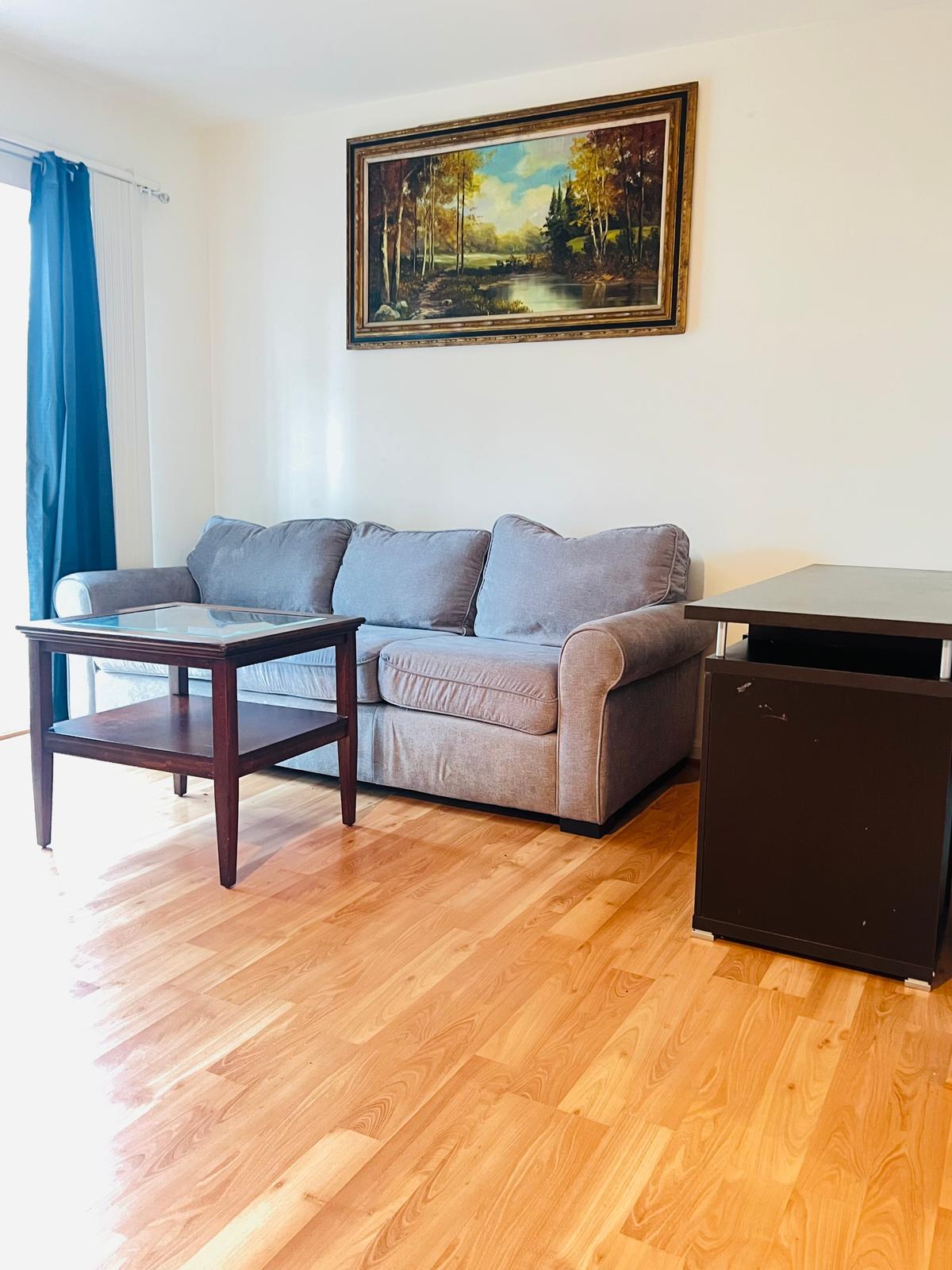 End unit walkout basement with entry/exit; 1 bedroom with East facing window; spacious and bright living room; kitchen; full bath with a bathtub; furnished with a Queen size bed; great neighborhood with a lot of parking space; close to Highways; Grocery and schools.