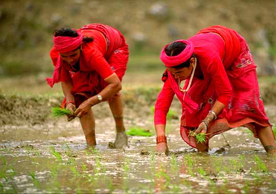 Dear friends, Here is one picture I took few years back from Sirubari. Sirubari is a village in North-West of Shyangja Districts. Majority of the population is Gurungs. I had made small study on them closely. The Gurungs live together with other ethnic groups. Majority of them, the Magars and their Khasa counterparts, have formed the bulk of the famous Gorkha regiment of British and Indian Army; Royal Nepalese Army and the police. These sturdy, hardworking people are Mongoloid physionomically. They extend their living territories from Gorkha in the east through Lamjung and Kaski to Syangja district. Almost every Gurung village or a family boasts many young men in the Gorkha regiment; their pensions and salaries being one of the main resourses of their living. The economy of the Gurungs are mainly based on agriculture, animal husbandry and services in the army. They grow rice, wheat, maize, millet and potatoes. The terraced farming is the norms. They also derive their subsistence from sheep breeding for meat and wool. While sheep herding they use fierce mastiffs (sheepdogs). Most of the Gurung families have, however, an important source of income; the pensions and salaries of the family members who are in the army. Among them, there still exist the legendary fighters of British Gorkha Regiment, who were honored with Victoria Crosses for their bravery. The Gurungs are very colorful, happy and flirtatious people. A caste hierarchy divides the Gurung community into ' char jat' and ' sor jat', group of four and sixteen clans respectively. They are distinctly endogamous groups. Traditionally they prefer cross- cousins marriage. Among some Gurungs, a small amount of compensation may be necessary if one wishes to avoid cross- cousins marriage. The parallel cousins marriage is , however, strictly prohibited. They also have a tradition of ' Rodi' , a club of boys and girls of similar age group where dancing and singing is performed. This institution gives them ample opportunities to know, understand each other and develop love and affection. The environment in the Rodi is very flirtatious. The whole function is guided and held in the supervision of an adult. The Gurungs have very interesting dance tradition. They perform Sorathi, Ghado, Ghatu and others on one or many occasions. The dancing season generally starts on Shri Panchami day ( On the fifth day of bright lunar fortnight some day in January or February) till the day of Chandi purnima (some day in May or April). Traditional dress of the Gurungs includes a short blouse tied across the front and a short skirt of several yards of white cotton material wrapped around the waist and held like a wide belt. The Gurung women wear a cotton or velveteen blouse tied at the front, and a sari of printed material usually a dark reddish color. Their ornaments include gold and coral necklaces, gold earrings and nose rings and bangles.