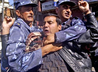 well Sadhe de ASAN you have valid point about julush and student getting involved in jlush... and politics.. but the point here is the ruthlessness.. how can 5 male cops surround a woman and beat her in public in broad day light.. if this happens in public in broad day light in capital... i wonder what happens in village where no reporter are present to take a photo.. i wonder what would have they done if no one was around... I know politicians are first to be blamed for all the mess going on in nepal... but now with his recent cabinet.. gyanendra proved that he has no intention to give solution to political problems in nepal... Once side he is trying to gang up ruthless killers in cabinet to supress the agitation if it grows in future...... second he is trying to bring in chamchas and ass licker public figures to build his image... these baun chora are not worried about giving resolution to political problem in nepal.. they are just trying to muscle themselves and bring in the complete autocratic dictatorship.... But gyanendra or any of gyane's ass lickers if you are reading this posting, I would like to warn you do not ever think of repeating what King Mahendra did... because this situation is different from that... if you do that.... it will be sad but it will be true that either nepal will become communist republic or nepal will go in hand of foreign government esp india and we dont want that... and for sure you dont want that too.. I always thought that Gyanendra was trying to solve political crisis of nepal... but going through the names in new cabinet its damn sure now he is trying to establish absolute power... down with autocracy of King... wake up dude before its too late....