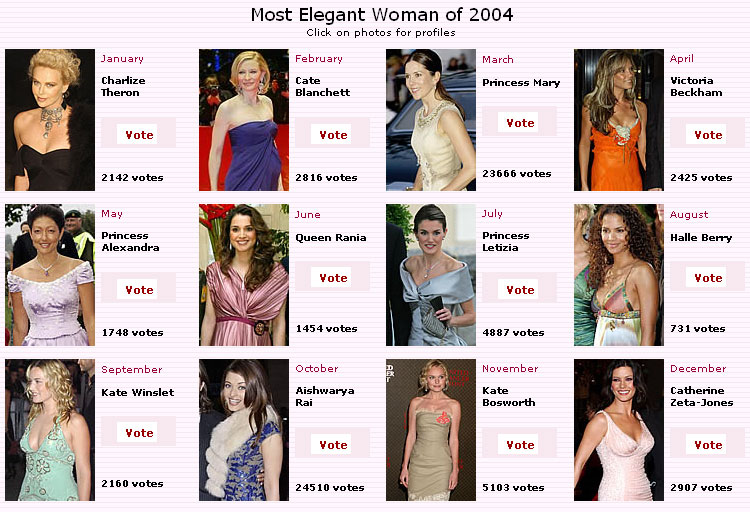 aish on 60 secs aish with letterman aish with oprah halle berry and julia roberts agreed that shes the most beautiful woman and dont you see she got the most votes on beautiful woman 2004, she still does and would! shes like competing with jolie and theron is okay but surely behind aish. aish is in the top~