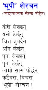 Ammaaai, Ma ta Bhupi thuluba ko ta sarai thulo fan po huum ta. Malai sabai bhada taak lageko chhai tyo "Saguro galli ma mero chowk chha, yaha ke chhaina saba thok chha" ho. Kohi daju haru le yeso post gardinu na..... Plzzzz