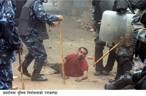 Dhedey ta Dhedey nai ho........ They used to be SAME BEFORE, IN THE PAST, NOW, AND STILL IN THE FUTURE WILL REMAIN THE SAME. NOTHING WAS DIFFERENT B4, SO WAT DO U EXPECT NOW??? Not only in NEPAL....hey somebody show some picz police beating up in USA, FRANCE, IRAQ etc...... wat u gotta say??? EVERYONE KNOWS if you get caught by POLICE, they beat yo ass up....so WHY NOT RUN??? DIN'T NOBODY TELL THEM. NOW lets come back to those picz ---- YES, I WAS REALLY SADDENED. ALL YOU SAJHA PEEPS, GO HELP THEM, DON'T COME OUT HERE AND TALK BIG. IF YOU DON'T LIKE MY COMMENTS. WATITDO MAN.