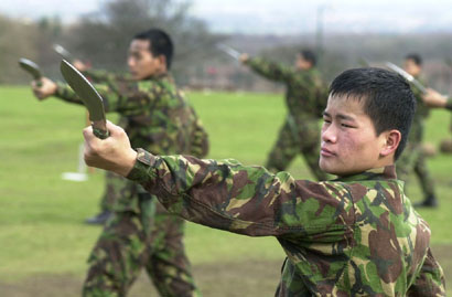 To all Gurkhas fans, I think Gurkhas are loyal fighters. They would fight the same way for Osama bin laden, Maoists, British Empire, or kings of nepal. I think its in Neplease nature to be loyal with vandata that makes them fierce warriors. 200,000 gurkhas died in world war II and for what?....gurkhas gurkhas what did u die for?....and gurkha said nothing at all. It was nothing but a foriegn employment. Gurkhas who were raising corns in the hills of nepal were recruted for minimum wage to be cannon feeders by Brits, at home Rana sold them for 10.00 pounds each as royalty and kept the money in their personal account. Nothing so as to disrespect those fierce and loyal fighters. But i wish those 200,000 productive young men have stayed back home in nepal and raised some corn or kodo..so that nepal would not have pushed 50 years backwards. No one knows how much the death of 200,000 gurkhas effected nepal economically. I think that being a gurkha is just a foriegn employement and i am in favour of foriegn employment. I encourage more ppl to go out and seek employment. But there is no pride in haviing those 200,000 anchestors being kills for no apparent reason .They killed themselves for the war that they had no idea of. Gurkhas didnt even no who they were fighting for and what the world war was all about. Lets reach out the world and find ways to get employed in each way we all can. So that the little jobs we have left in Nepal can be spared for neplese back home. But lets also stop being proud of gurkhas who died for brits for 10.00 pounds its. It was our misfotune that our anchestors were used by people at home and the emperilists for their own benefits.
