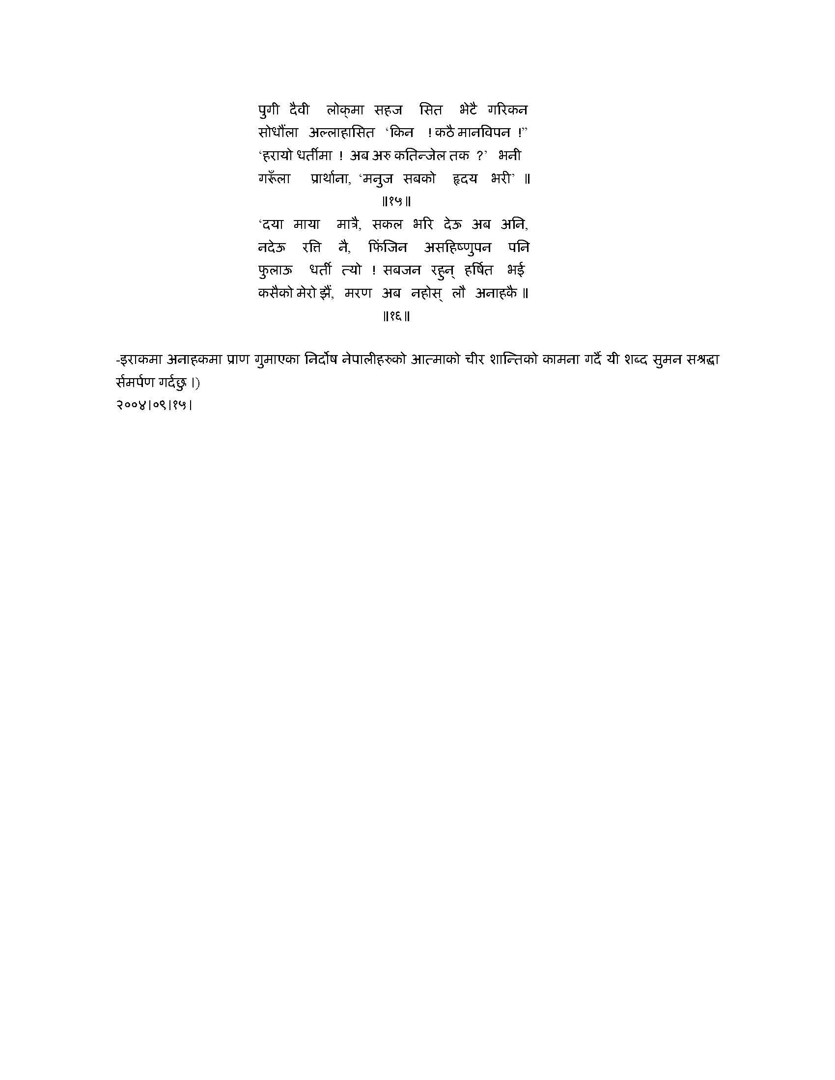 अघिको कवितामा अक्षरको साइज अपेक्षाकृत ठूलो भएको मा क्षमा प्रार्थी छु । मेरो आर्को कविता जुन शार्दूल बिक्रिडीत छन्दमा छ, यहाँ टाँसेको छु । धन्यवाद