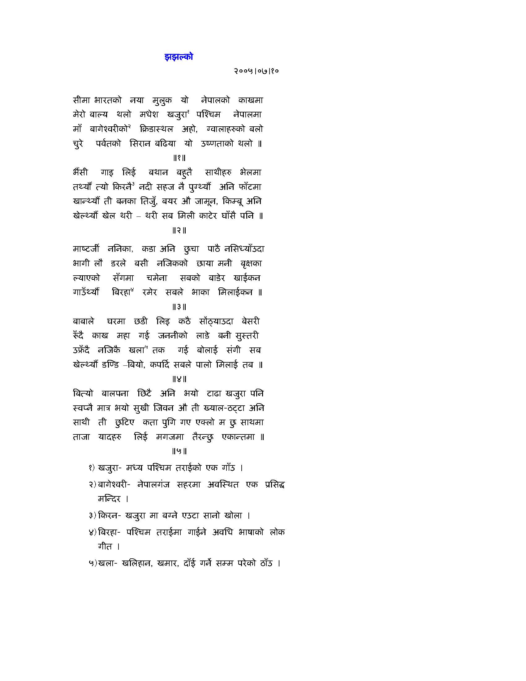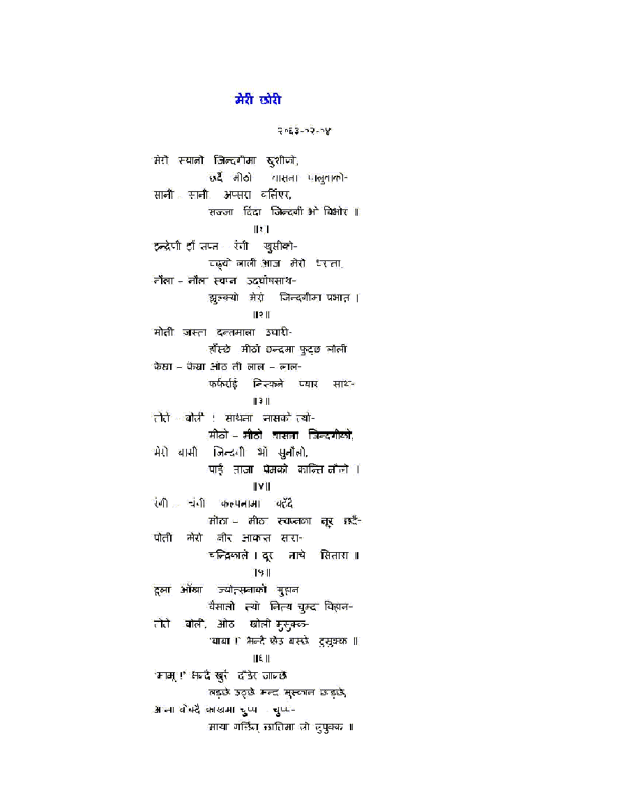 माथिको कविता उल्टो पाल्टो भएछ stanza no अनुसार सच्याएर पढिदिनु हुन अनुरोध गर्दछु ।