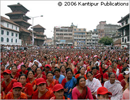 Thousands of people from the Newari community take part in a mass public gathering welcoming the House proclamation that declared Nepal a secular state at Basantapur, Kathmandu on Thursday. (Photo: Shruti Shrestha )