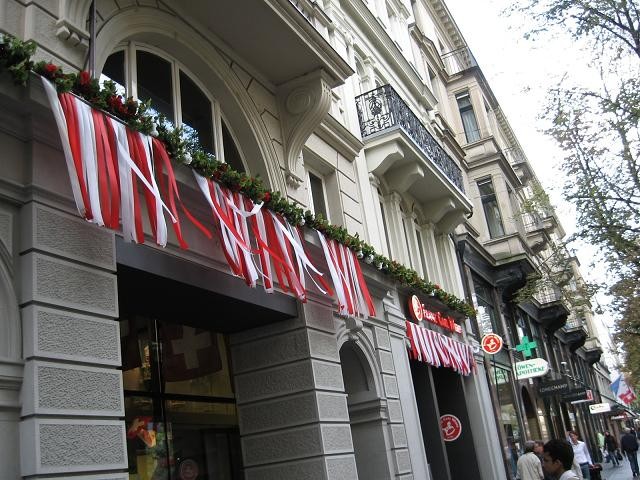 Swiss love their flag and its colour.....RED and WHITE.