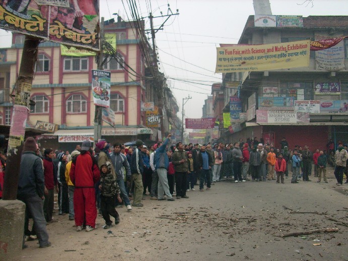 PIC of the day re ...hahahahahahaa Maobadi monkeys burning tires and wood in street.Wanna be Civilized jungles.  Soon these maobadi will bring donkeys and bullcart in ktm when NOC has no oil.