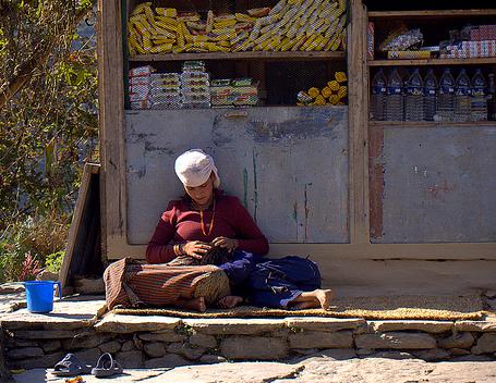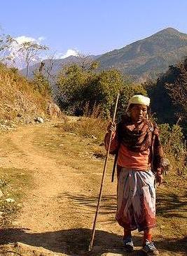 A lady walks in Annapurna trail. Says she, " जीवन बगी रह्यो, मन को बह र दु ख कहिल्यै सक्किएन "