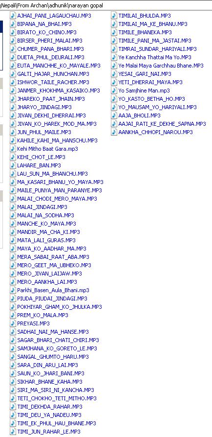 Hi Ruchi, This what I have of Arun Thapa's Songs. Any some you want uploaded, just say so.