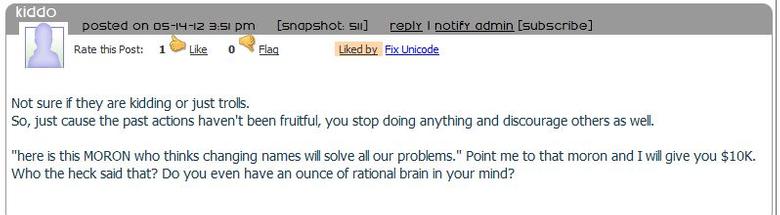 He is criticizing something somebody proposed; I actually support that. We ought to have criticism, hopefully constructive, so that we can analyze the good and the bad. Using "ha ha ha" and words like "moron" doesn't help put a sound criticism; and if you want to criticize a point, you should be equally willing to hear the other side. I hope you will do that.