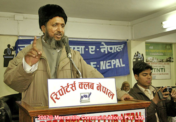 MUSLIM LEADER WARNS NEPALI GOVERNMENT AND 8 CROOK POLITICAL PARTIES OF NEPAL. THEY WANT EQUAL RIGHTS AND EQUAL POWER. THEY WANT MUSLIM RIGHTS AND FREE RELIGIOUS RIGHTS IN ALL NEPAL.