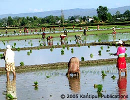 छुपुमा छुपु धानहै रोप्?नु हातमा बिउ छँदैं। चौतारीमा रमाईलो गरौं यि गाम्?ले बसुन्?जेल। -लाल बहादुर खाती