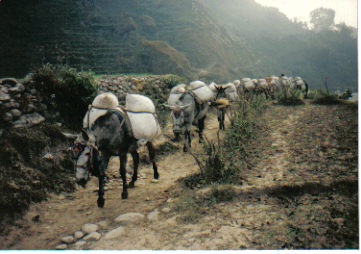 Nirman, I appreciate your idea of creating a photo gallery. Let me contribute in your effort with a picture of donkies carrying salt heading to Tatopani from Beni in 1993.