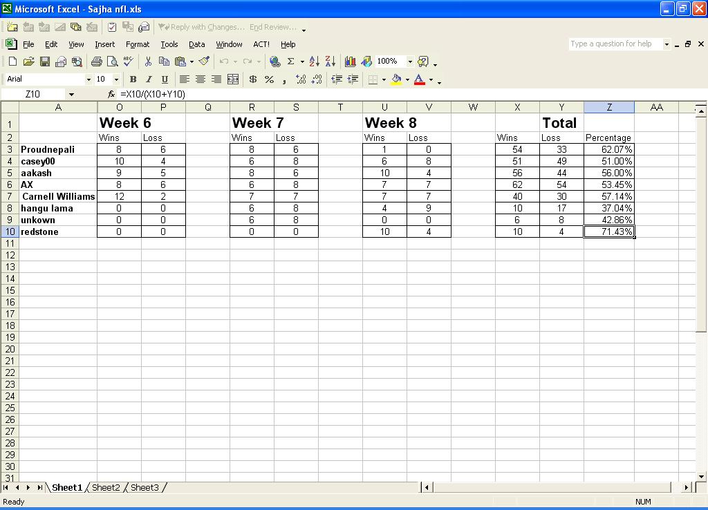 Ax, I think Redstone did predict ahead of Sunday. I think he predicted Week 8 on 10-26-04 but i saw 0 in his wins and loss columns. Just wanted to let you know for the man to have his fair share of wins and losses. ProudBro...yes, USC is overrated eventhough they are a great team. Thier schedule really sux. They basically play NOBODY. Notre Dame will be thier toughest challenger. Now that is really pathetic. Go Auburn!! Go Falcons!!