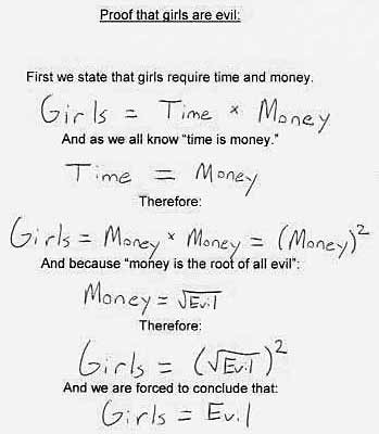 // I would say love of money is the root of all evil. The lack of money is the root of girl's evil.