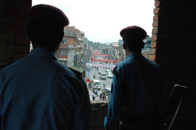 घरको छतमा पहरा दिदै गरेका विचरा प्रहरीहरु।