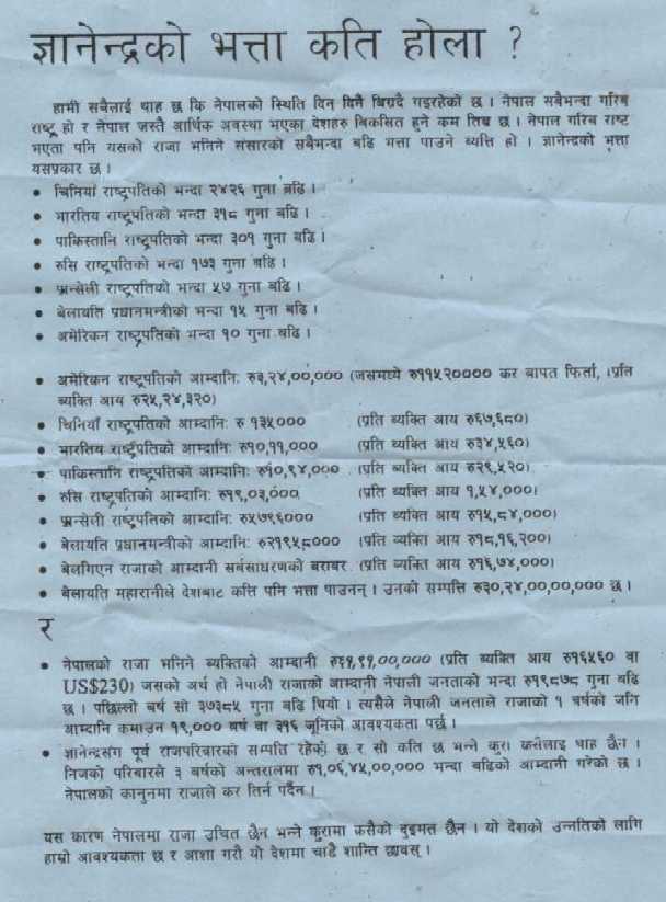 GARIB JANATA LE RAGAT PASINA GARI BUJHAYEKO KAR BATA RAJA GAYANDRA LE YETRO BHATTA PACHAUNA PAUNCHHA?
