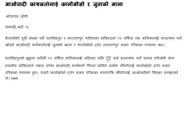 Maoists took away Fulo Devi Yadav in the charge of illicit relation with Kishun Dev Mahatto.