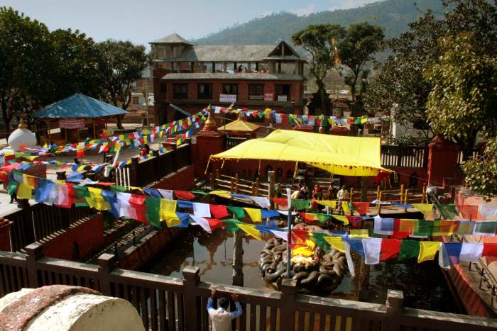 Above picture of Budhanilkantha (or is it Balaju?) is a fitting example of Hindu-Budhist coexistence in perfect harmony. Note that the shrine is of Lord Vishnu, a hindu deity. And note the several lines of Buddhist prayer flags that are posted all around the shrine. Makes me feel good.