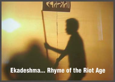 The film “Ekadeshma – Rhymes of the Riot Age” expresses sense of worthlessness, constraints, no sense, and grievance. It revolves around a young artist and his perception of the revolution happening in the streets and within himself, as viewed by the narrator. The interlude of a “Bhariya” character depicts the death and suffering of Nepali people. The film does not strive to impart any revelations or morals to the viewer. It has an open ending. No constraints here. Take of it what one wants. The film relies upon poetry, narration, visuals and music to relay its content.